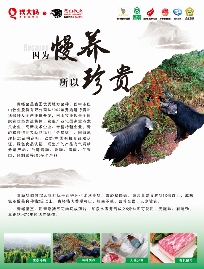 青峪黑豬肉 于2023年8月19日正式在“錢大媽”重慶市場開賣。